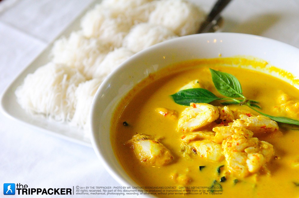 theTripPacker • October 03 , 2013วันนี้เรามีโอกาสได้ลิ้มลองอาหารพื้นเมืองต้น ตำรับของชาวภูเก็ต 3 อย่างด้วยกัน ซึ่งใครก็ตามที่ได้มาร้านระย้า ต้องเป็นอันสั่งมารับประทาน เมนูทีเด็ดที่ว่านี้คือ "เส้นหมี่แกงปูใส่ใบชะพลู" โดยความพิเศษของจานแรกนี้อยู่ที่เนื้อปูม้าหวานฉ่ำชิ้นยักษ์ ผสานเครื่องแกงกะทิสีเหลืองอ่อนสูตรเฉพาะของทางร้าน เมื่อเห็นแล้วทำเอาเราตะลึงไปตามๆ กัน เพราะเนื้อปูที่ร้านก้อนใหญ่มาก สืบทราบมาว่าที่ร้านใช้เนื้อปูม้าเกรด A ที่แกะกันสดๆ วันต่อวัน ไม่เหม็นคาว กัดลงไปแต่ละทีได้รสของเนื้อปูเต็มๆ กลิ่นหอม หวาน มัน เผ็ดเล็กน้อยของน้ำแกงนี้ทำให้เจริญอาหารอย่างบอกไม่ถูก เราสามารถเลือกรับประทานแกงปูใบชะพลูให้อร่อยได้สองแบบด้วยกัน ทั้งข้าวสวยร้อนๆ และเส้นหมี่ลวก แต่ไม่ว่าจะเลือกรับประทานคู่กับอะไรปลายทางของรสชาติก็คือความอร่อยเหมือน กัน เห็นอย่างนี้แล้วคงสาสมใจคนที่รัก “น้องปู” ไม่น้อย อย่าหาว่าแกงปูของร้านระย้าแพงเลยครับ บอกได้เลยว่าคุ้มจริงๆ