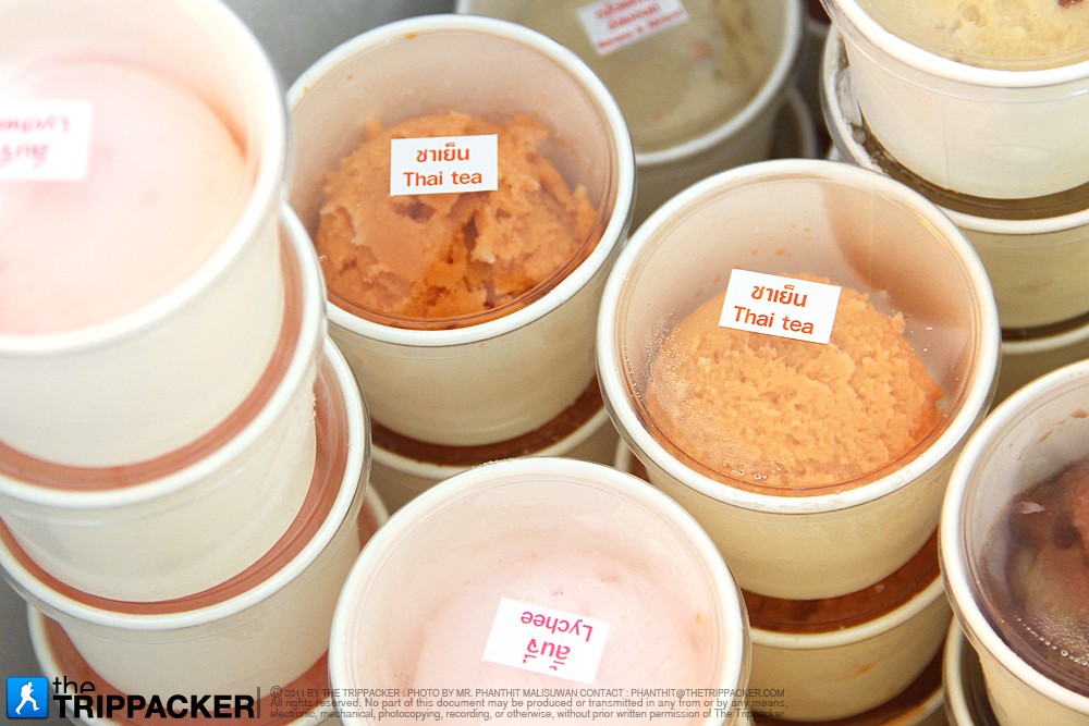 สำหรับ ใครที่ชื่นชอบขนมหวานแบบไทยๆ อย่างทับทิมกรอบ ต้องยกให้ร้านนี้เลย “ทับทิมกรอบเจ๊อ้วน” ที่ตัวทับทิมสีชมพูสวยทั้งเม็ดโตทั้งกรุบกรอบเต็มปากเต็มคำ มาในน้ำกะทิหวานมันกำลังดี ถ้าจะให้ครบสูตรต้องเพิ่มมะพร้าวกะทิเนื้อนุ่มลงไปด้วย รับรองอร่อยจนลืมอ้วนไปเลย แต่ถ้าใครอยากกินน้ำแข็งไสแบบอื่นๆ ที่ร้านนี้ก็มีเครื่องให้เลือกมากมาย ทั้งสลิ่ม รวมมิตร ลูกตาล แห้ว และแปะก๊วย ชอบกินอะไรเป็นพิเศษก็สั่งเพิ่มไปได้เลย สำหรับดีกรีความอร่อยนั้นแค่เห็นป้ายการันตีจากเชลล์ชวนชิมก็รู้แล้วว่าเด็ด แค่ไหน ที่สำคัญร้านนี้เปิดขายตั้งแต่กลางวันไปจนถึงค่ำ ดังนั้นถ้านึกอยากกินทับทิมกรอบหวานๆ เย็นๆ ขึ้นมาตอนไหนก็มากันได้เลย
