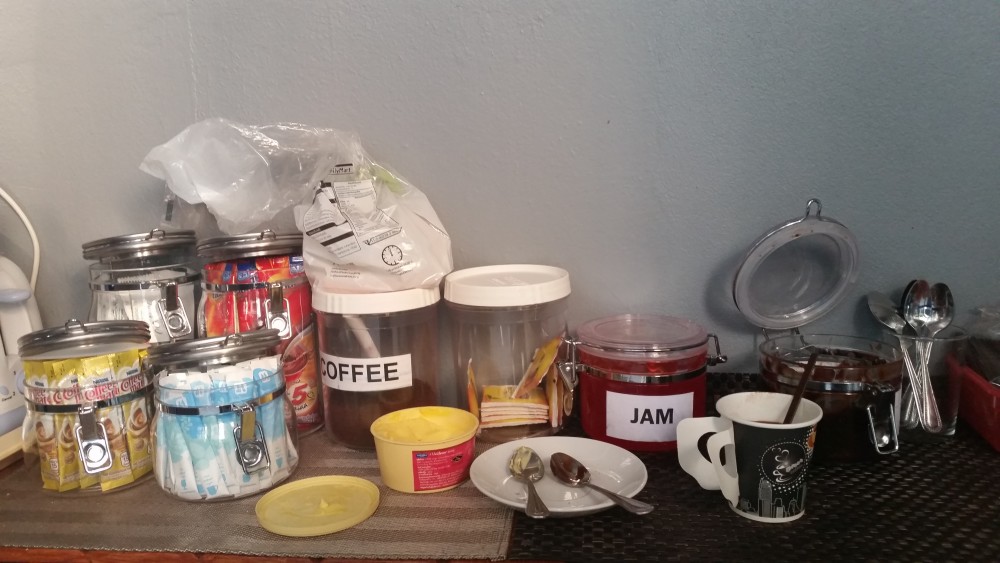 พอตอนเช้า เราก็กะว่าจะขับมอไซค์ไปดูพระอาทิตย์ขึ้นกัน ที่ไหนได้ไม่มีใครตื่น ก็เลยเปลี่ยนแผนเป็นขับรถชมเมือง ไปหาอะไรกินเป็นอาหารเช้าในตลาด แต่พอดีที่พักมี โอวัลติน ขนมปังปิ้งก็เลยจัดไปหลายแผ่น ลืมบอกไปเมื่อรีวิวที่แล้วค่ะ ว่าที่พักใกล้กับคิวรถตู้กลับกรุงเทพ เดินออกไปเลี้ยวขวา เดินสองสามก้าวถึงเลย
