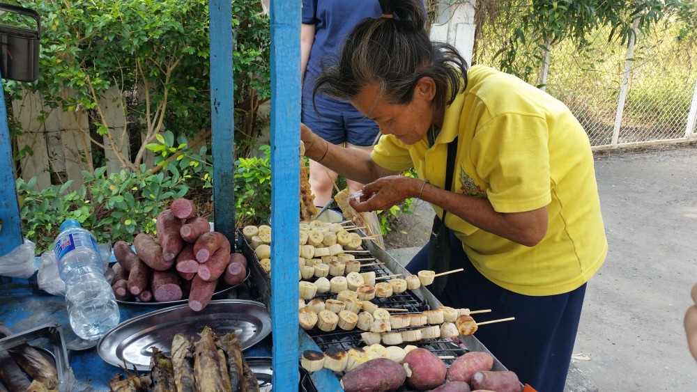 ก่อนกลับที่พักเราเจอรถเข็นคุณยาย เลยแวะอุดหนุนซะหน่อย ใครไปเที่ยวประจวบเจอคุณยายก็ช่วยกันอุดหนุนหน่อยนะคะ น้ำจิ้มกล้วยปิ้งหอมน้ำตาลมาก