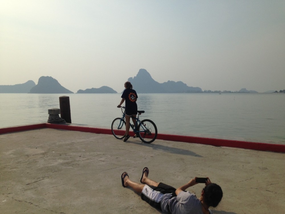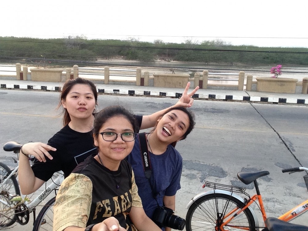 หลังจากเก็บสัมภาระเสร็จ ก็ตามหาที่เช่าจักรยาน เดินไปหน้าหาดมีให้เช่าเยอะแยะเลย ก่อนออกจากที่พักก็ถามที่เที่ยวพี่เค้ามาบ้าง พี่เค้าบอกวันนี้มีงานกาชาดวันสุดท้ายแล้ว แล้วก็มีวิ่งขึ้นเขาช่องกระจก เขาเพิ่งมาบอกเมื่อกี้นี้เอง