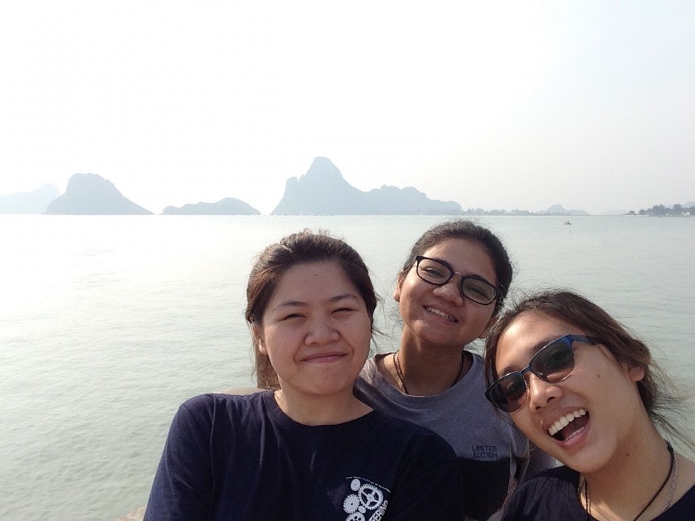 - เขาช่องกระจก เป็นบันไดประมาณ 3,000 กว่าขั้นซึ่งวิวด้านบนก็คือป้ายเมืองสามอ่าวที่เราเห็นตอนนั่งรถไฟนั่นเอง ที่ว่าเมืองสามอ่าวนั่นก็คือ อ่าวน้อย อ่าวประจวบและอ่าวมะนาว โดยถ้าเรามองไปทางอ่าวมะนาวเราก็จะเห็นเขาล้อมหมวกซึ่งเป็นที่เราตั้งใจจะไปขึ้นในวันพรุ่งนี้