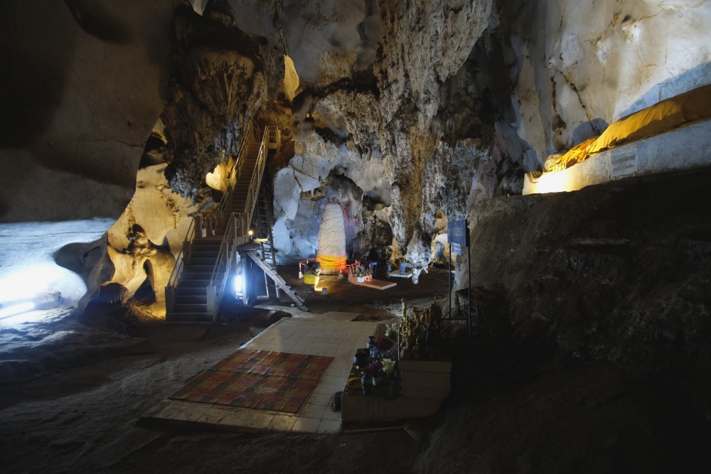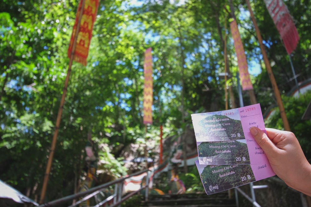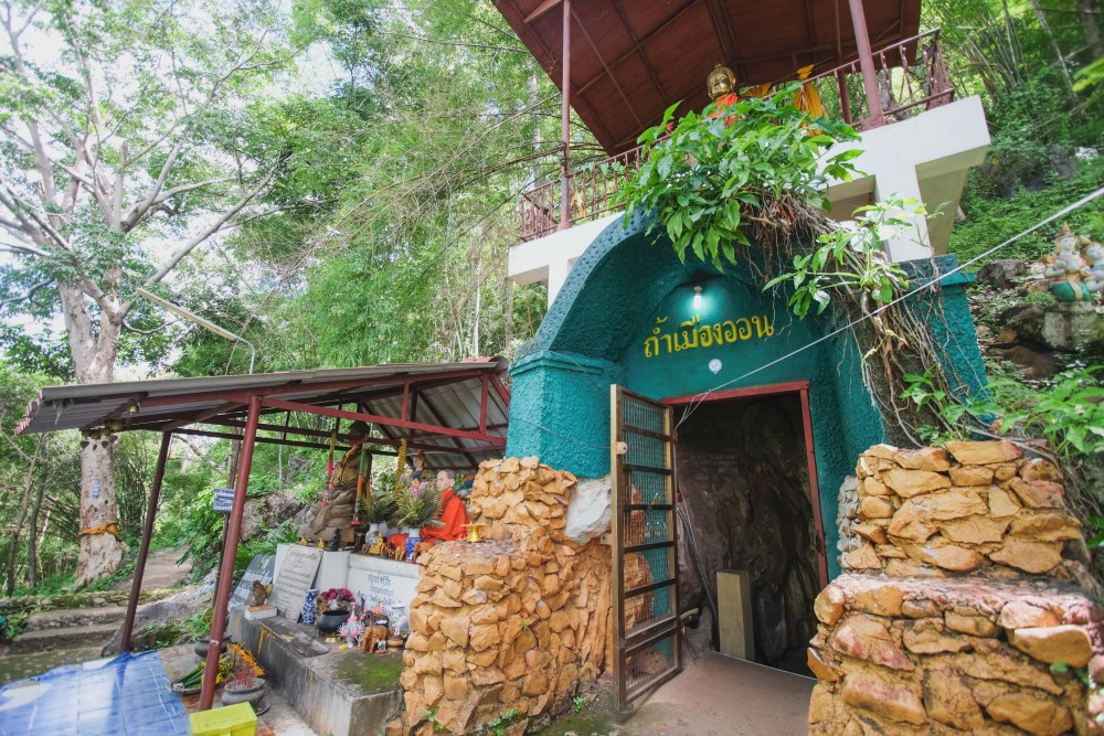 อิ่มท้องแล้วเดินทางกันต่อระหว่างทางเราเจอป้าย "ถ้ำเมืองออน" จึงเลี้ยวเข้าไปชม ค่าเข้าชมคนละ 20 บ. ค่าดอกไม้ธูปเทียน 10 บ. เดินขึ้นบันไดนาคไปยังปากทางลงถ้ำ ทางเข้าเป็นบันไดปูนค่อนข้างชันสูงไม่มากนัก ภายในถ้ำมีไฟส่องสว่าง อากาศเย็นสบายแต่อึดอัดเล็กน้อย ภายในประดิษฐานพระพุทธรูป และพระธาตนมผา