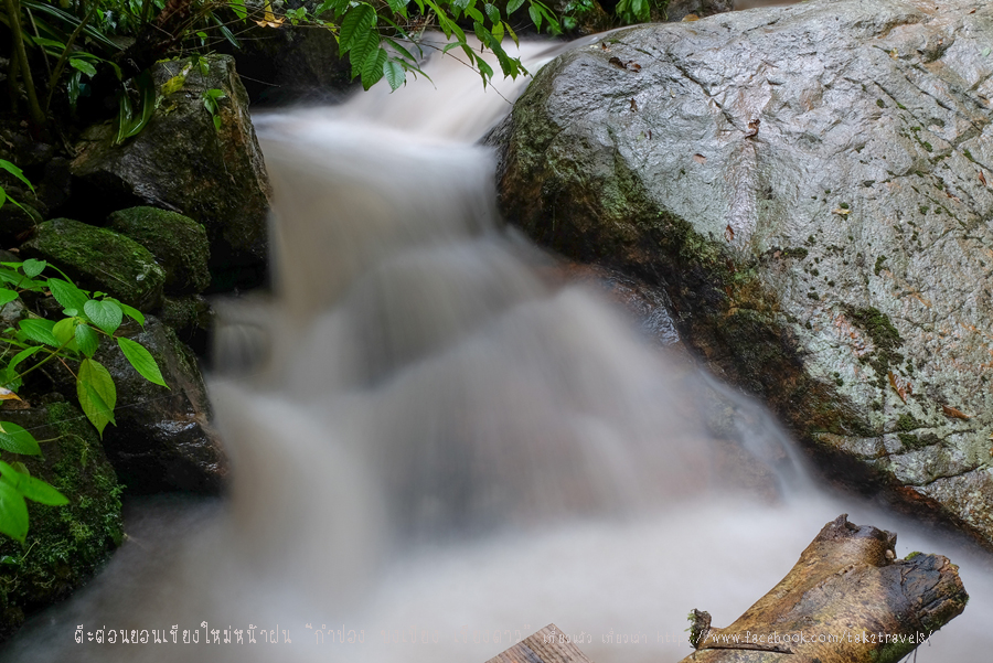 ฤดูฝนมาถึงอีกแล้ว ใครหลายคนอาจไม่ชอบที่ฝนตกไปไหนมาไหนลำบาก วันหยุดก็อยากอยู่บ้านนอนฟังเสียงฝน จะดีกว่าไหมถ้าเราได้ไปนอนฟังเสียงฝน ได้เที่ยวด้วย เราเป็นคนชอบเที่ยวหน้าฝนมาก เพราะรู้สึกว่าถ่ายรูปติดสีเขียว ๆ ของต้นไม้ใบหญ้าแล้วสดชื่นสบายตาดี อากาศไม่ค่อยร้อนด้วย คนก็น้อยไม่ต้องแย่งกินแย่งเที่ยว ตั๋วเครื่องบินก็ถูกกว่า ทริปนี้มีกัน 3 คน ตามมาทีหลังอีก 1 เดินทางจาก กทม. โดยเครื่องบินจากดอนเมือง ถึงสนามบินเชียงใหม่ประมาณ 11 โมง รับรถเช่าซึ่งทำการจองล่วงหน้าประมาณ 2 สัปดาห์ ขับรถออกจากสนามบินเลี้ยวขวาแล้วตรงไปยังเส้นทางสันกำแพง เพื่อไปยัง อ.แม่ออน ที่ตั้งของบ้านแม่กำปอง