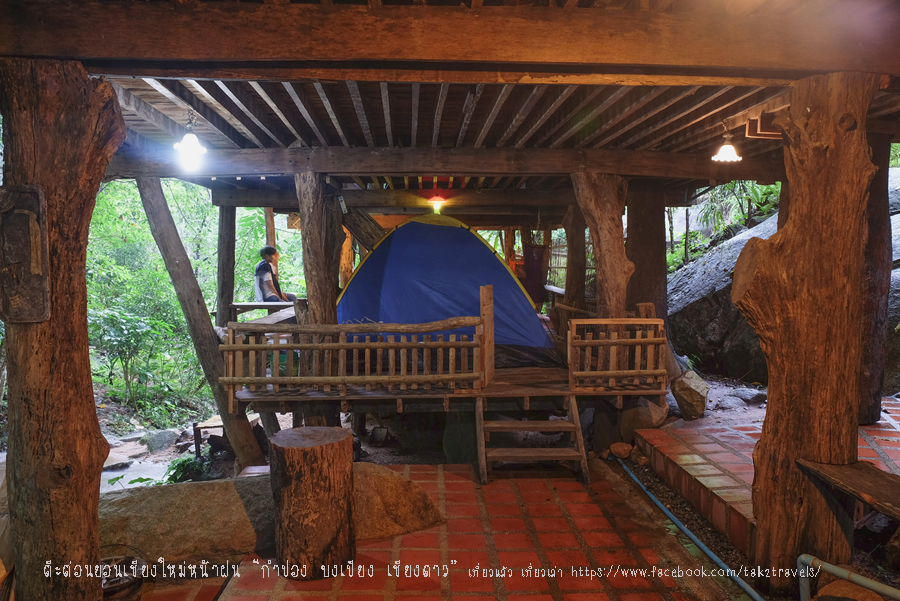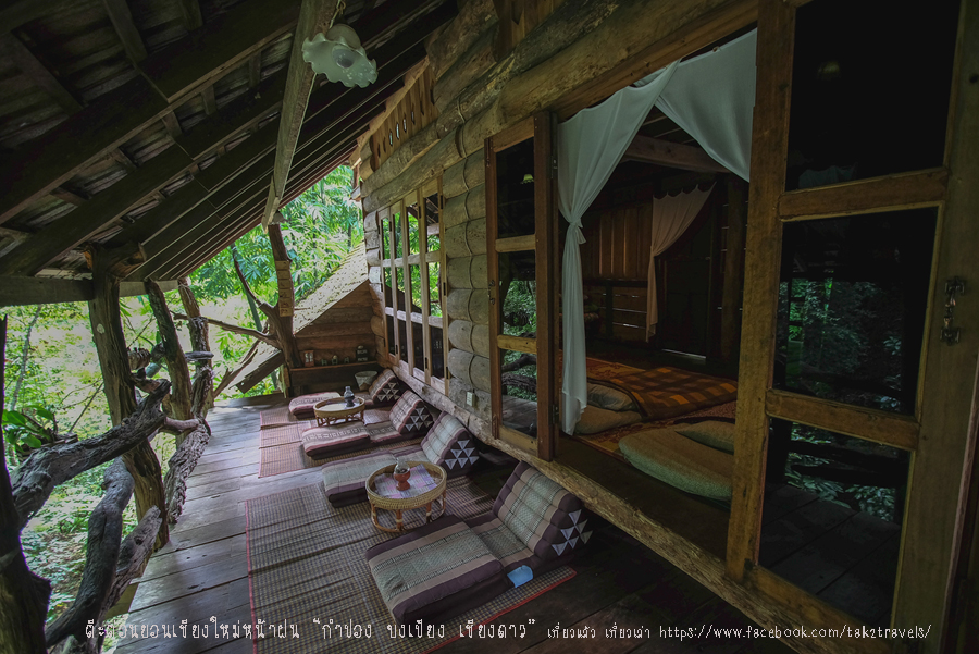 ฝนเพิ่งหยุดตก ลำธารน้ำเยอะขุ่นเล็กน้อย คืนนี้นอนฟังเสียงน้ำไหลทั้งคืน เหมือนฝนตกตลอดเวลา หลับสบายตลอดคืน ที่นี่ไม่มีพัดลม อากาศเย็นสบายนอนห่มผ้ากำลังดี ห้องน้ำมี 3 ห้อง มีเครื่องทำน้ำอุ่น ไม่มีทีวี แต่มีเต้าเสียบไฟฟ้าใช้ตลอดนะ