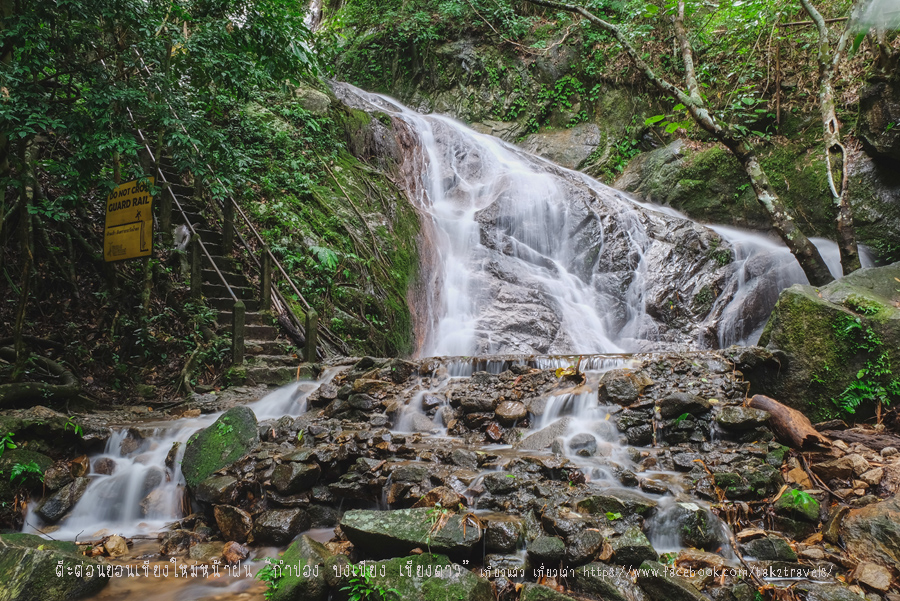 น้ำตกใส และเย็นเหมือนน้ำในตู้เย็นที่บ้าน มีทางเดินบันไดปูนและราวจับตลอดทางเดินชมน้ำตก สร้างได้กลมกลืนธรรมชาติ