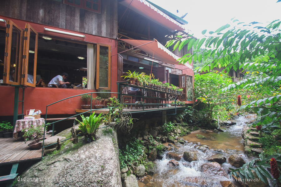 บรรยากาศในร้านร่มรื่นติดลำธาร