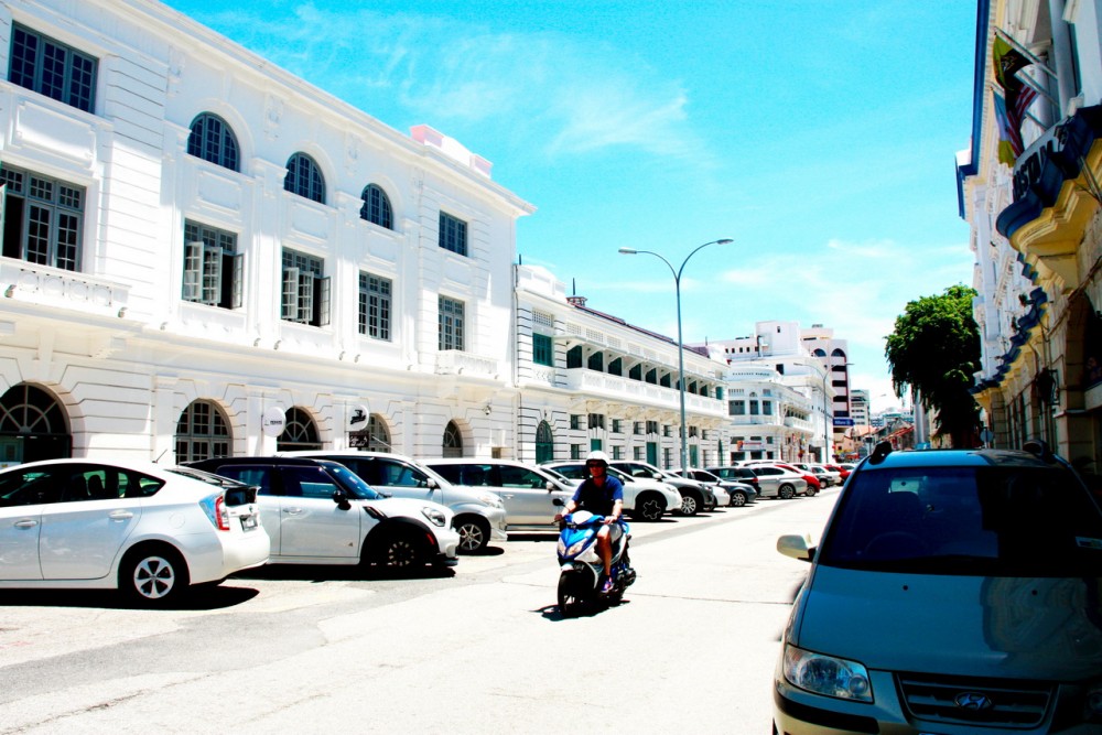 ข้ามถนนมาจากฝั่งท่าเรือ เอาละไง ต้องเริ่มจริงๆละ อันดับแรกหาที่พักก่อนเลย คืนแรกเราพักที่ Time Capsule Hotel ก่อนเดินทางมาได้จองไว้กับ agoda เป็นโฮสเทลนอนรวมแต่เลือกแบบแยกชายหญิง ดูอยู่นานนึกภาพไม่ออกว่าที่นี่เป็นแบบไหน ตื่นเต้นอีกละ แต่....ตอนนี้ หยิบโทรศัพท์ขึ้นมาค่ะ แผนที่ด่วนๆๆๆเลย ก่อนมา...อีกละ เราโหลดแอพแผนที่มาใช้ เป็นแบบออฟไลน์ ชื่อแอพ maps.me แล้วก็โหลดแผนที่ปีนังมาลงไว้ในเครื่อง ไม่ลงรายละเอียดเรื่องการใช้แอพเนอะ สะดวกสบายพอควรเลยแอพนี้ มีพิกัด Streetart เยอะพอควร บางรูปไม่มีในแอพ เนื่องจากเป็นรูปใหม่ หรือบางรูปโดนลบไปแล้ว มีรูปไรบ้าง ไปติดตามกันๆๆ  ระหว่างทางเดิน ผ่านตึกราวบ้านช่อง ดูชิลกับแดดเปรี้ยงๆ ความอยากรู้อยากเห็นแล้วก็มัวแต่ถ่ายรูปทำให้เราลืมความร้อนที่แผดเผาอยู่กลางหัวจนไฟจะลุกอยู่ละ