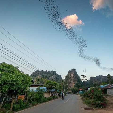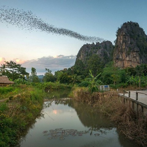 แตกตื่น!!! ฝูงค้างคาวหลายแสนตัวบินออกมากลางหมู่บ้าน #thetrippacker #lumixg85