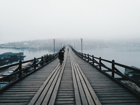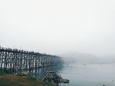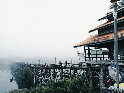 Photo byคนแปลกหน้า ⠀⠀⠀ เดินคนเดียวแล้วสะพานพังหรอ... #กูพาลหมดแหละ #นกแถวนี้มันเยอะ #โสดแล้วพาล #คนแปลกหน้า #stranger #leica #sangkhlaburi