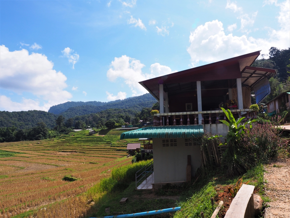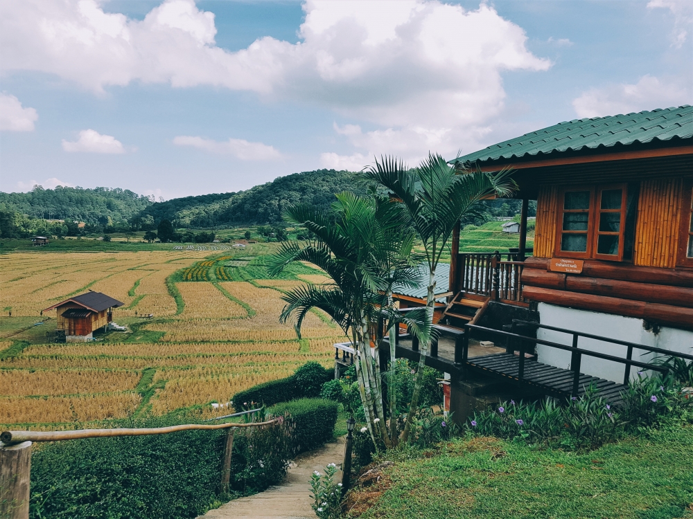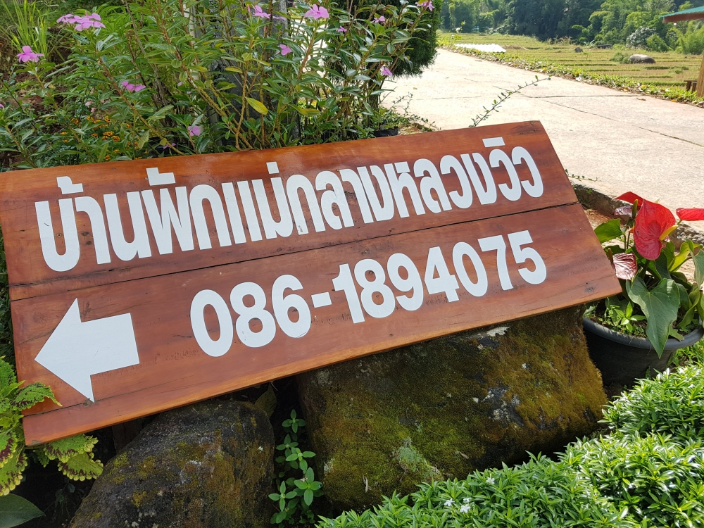 - ได้ไปพักที่หมู่บ้านแม่กลางหลวงใจกลางดอยอินทนนท์ "บ้านพักแม่กลางหลวงวิว" โดยที่มีพี่ไกด์ที่ได้ติดรถไปจากในเมืองช่วยหาจองให้ เพราะไปช่วงเสาร์ - อาทิตย์ เกือบทุกเจ้าก็เต็มกันทั้งนั้น (ราคาห้องละ 600 บาท โซนห้องด้านล่างอาคารร้านอาหารแม่กลางหลวงวิว)