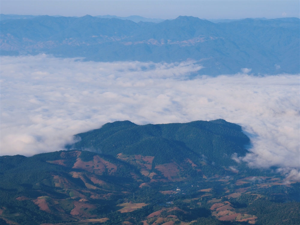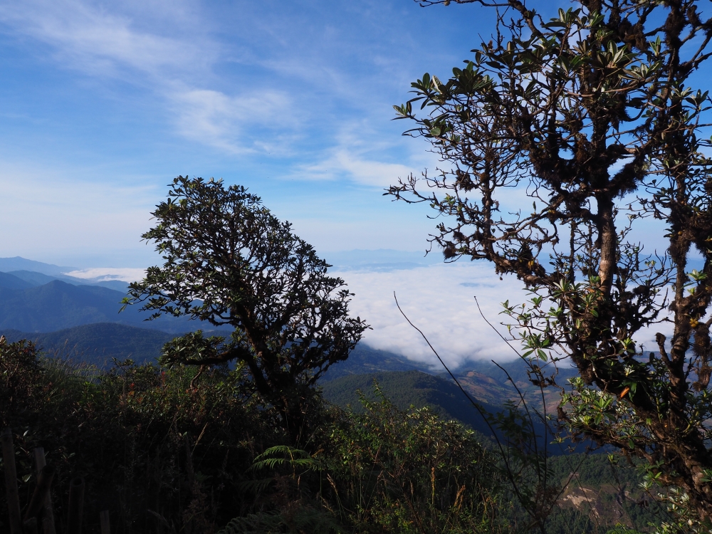จากจุดที่คนยืนชมแสงแรกกันเยอะๆ ฉันก็เล่นเลี่ยงลงมายังที่ลานจอดรถ ถึงกับร้องโอ้โห้ กับหมอกที่ออกมาโอบกอดเขาแล้ว บริเวณนี้ผู้คนจะบางตาหน่อย