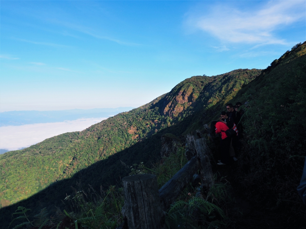 ลองซูมภาพเข้าไปที่สันเขาเห็นจากไกลๆ ก็จะเห็นนักท่องเที่ยงเดินกันตามไหล่เขาเพื่อมาสัมผัสบรรยากาศที่นี่