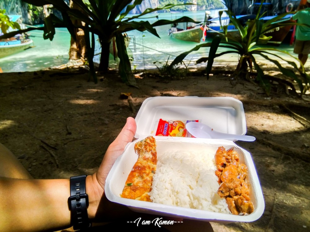 เจ้าหน้าที่จะแจกเป็นอาหารให้คนละ 1 กล่อง พร้อมน้ำดื่ม (น้ำดื่มมีให้ฟรีตลอดการเดินทาง)