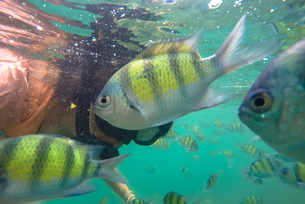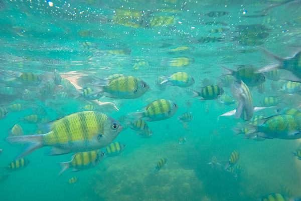 เฮ้ยย ! เป็นไปตามคำที่ลูกพี่บอก ปลาลายเสือเยอะมาก  มาเป็นดง  ไม่กลัวคนด้วย