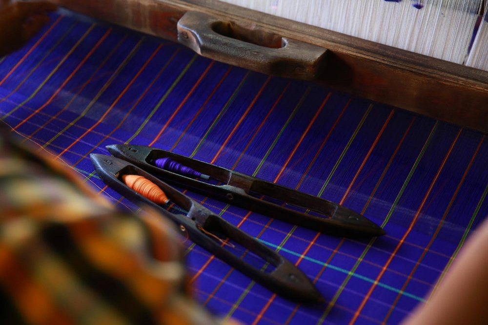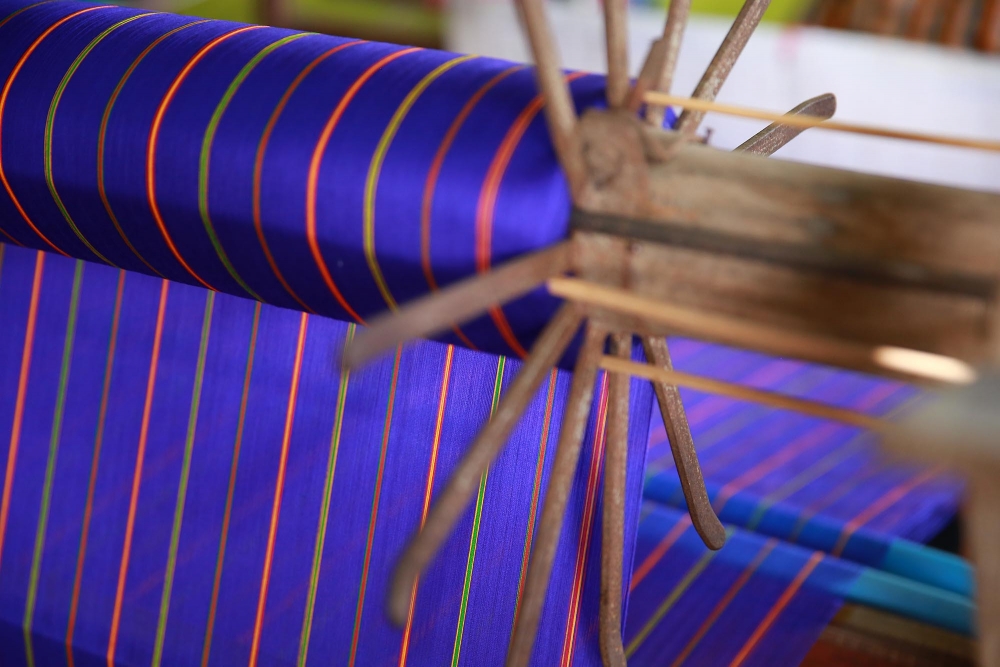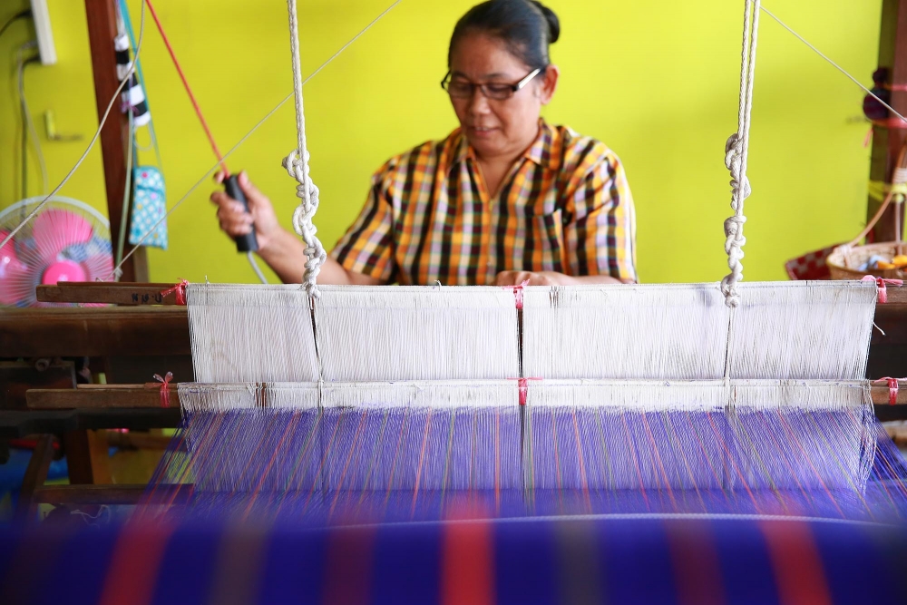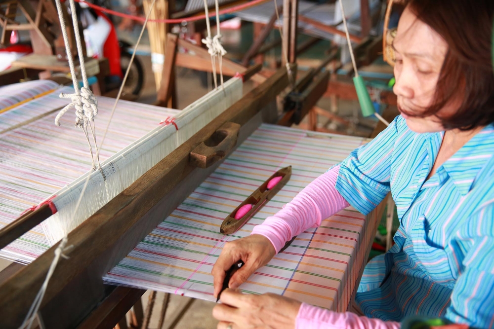 บ้านหนองขาว อำเภอท่าม่วง จังหวัดกาญจนบุรี เป็นแหล่งทอผ้ากี่กระตุก