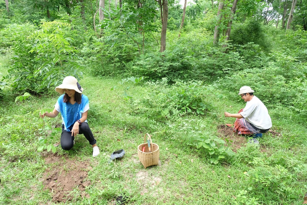 ด้วยการเชิญชวนแขกที่มาเข้าพัก และมีใจรักในธรรมชาติร่วมกันทำกิจกรรมปลูกป่าด้วยกันค่ะ