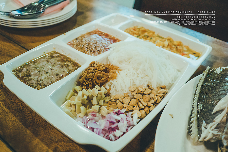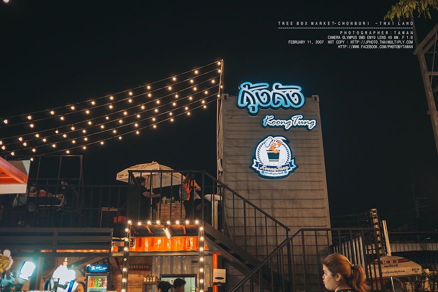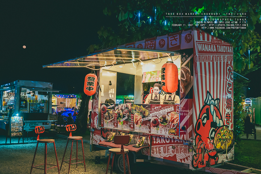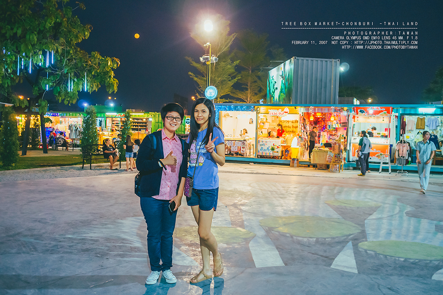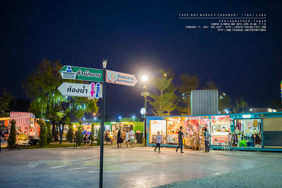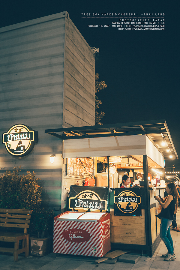 ตลาดนัดแห่งใหม่ ของอำเภอศรีราชา  ชื่อว่า Tree Box Market ตลาดนัดตอนเย็น ที่มีของกิน ช๊อป เที่ยว เดิน สบายๆ เป็นที่พักผ่อนใจหลังเลิกงานสำหรับคนทำงานมาเหนื่อยทั้งวัน ที่ต้องการหาอะไรทานอร่อยๆ เดินชิวๆ ถ่ายภาพเล่นบ้าง แล้วก็กลับไปพักผ่อน นอนหลับสบาย ลองไปเดินกันดูนะคะ พวกเราไปกันประมาณ 19.00 น. ก็เดินไปถ่ายรูปไป แต่สิ่งแรกที่ตรงไปคือ หาของกิน แหะๆ ตามไปดูกันค่ะ ว่าเราถ่ายอะไรมาบ้าง