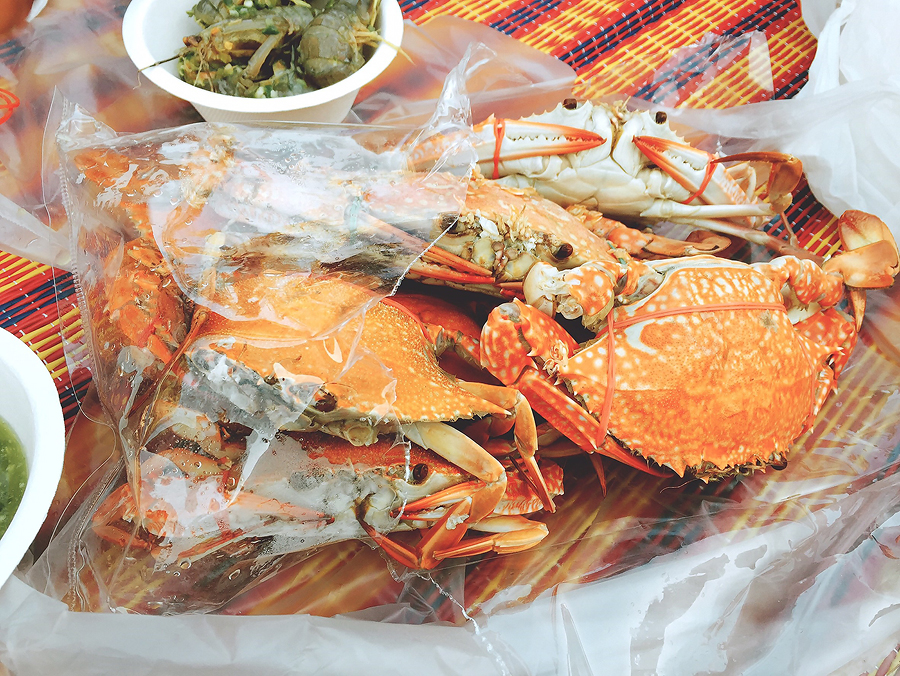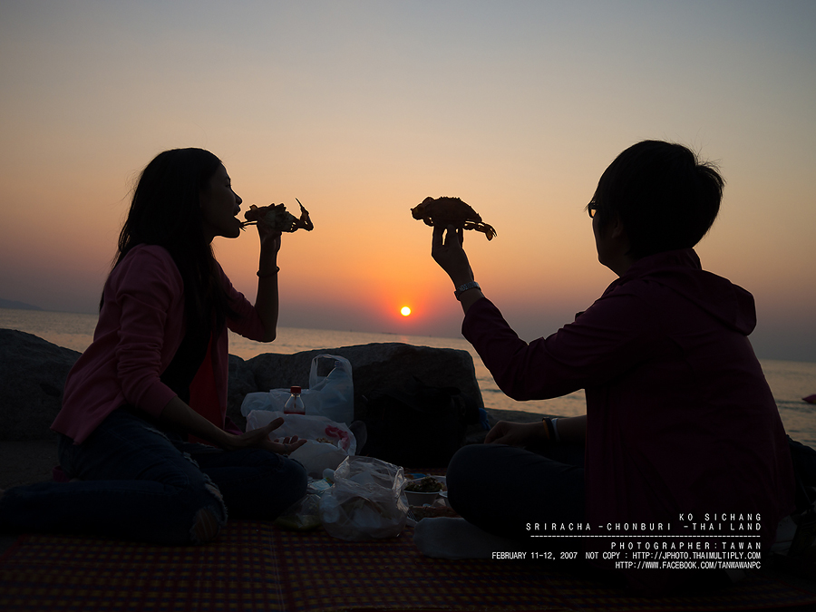 กินปูนึ่ง ปูเสื่อนั่ง ดูพระอาทิตย์ตก หาดบางแสน ฟินมาก