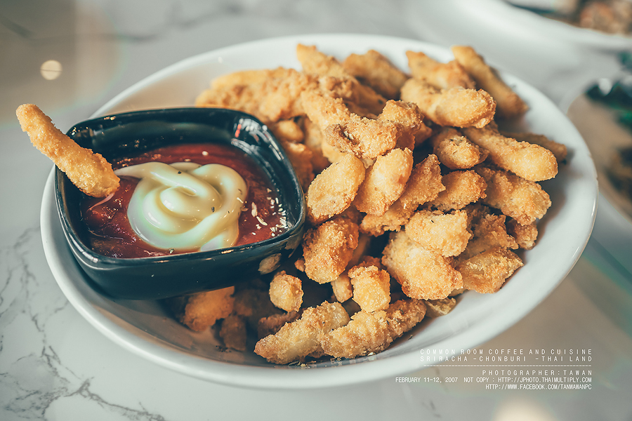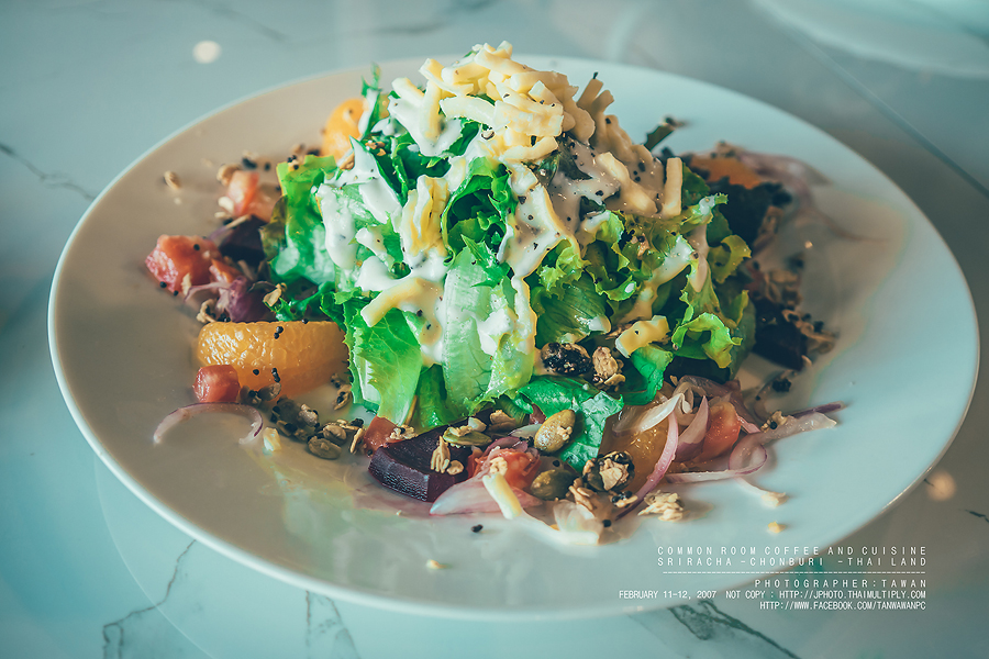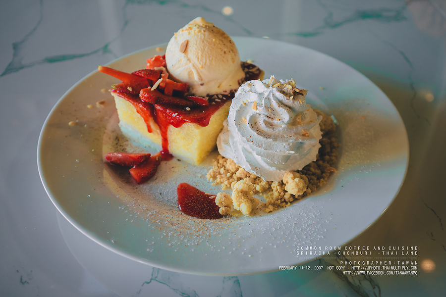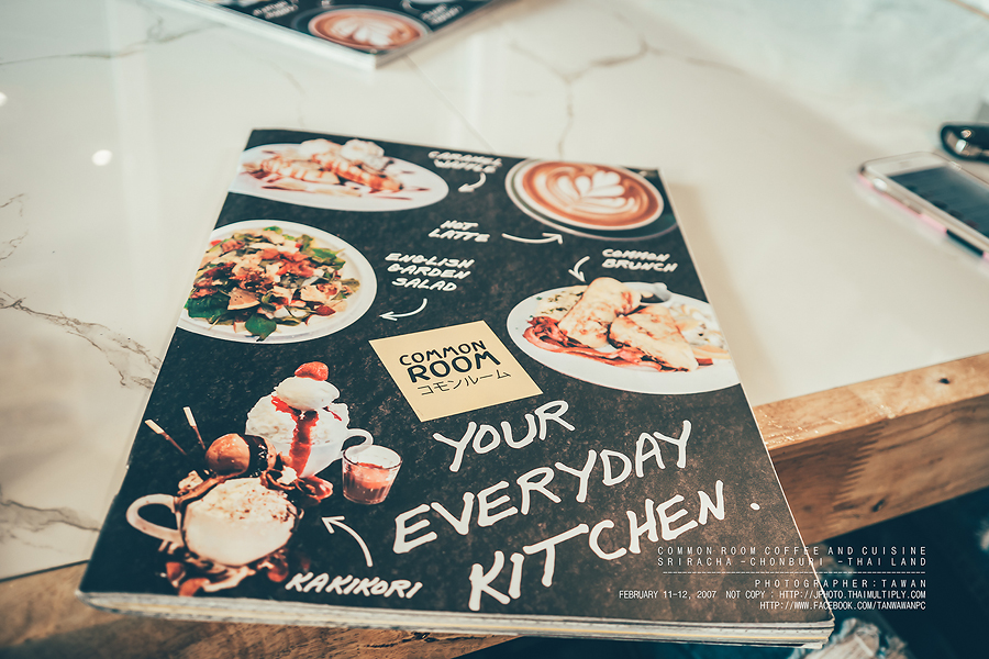 หลังจากที่ถ่ายภาพเสร็จ ใช้พลังมาก เรากลับมาเข้าเมืองศรีราชา มาร้าน Common Room ร้านนี้มีเมนูเยอะมาก เลือกไม่ถูกว่าจะกินอะไร  แค่หน้าตาเมนูก็น่ากินหละ ส่วนชื่อของอาหารที่สั่งมา ขออภัยนะคะ จำไม่ได้ แต่ถ่ายภาพใส่มือถือมา แต่ดันเผลอกดลบไปอยาก อยากจะบ้าตาย ขออภัยอย่างสูงจริงๆ ดูหน้าตาเอาคงได้นะคะ แต่อร่อยจริง