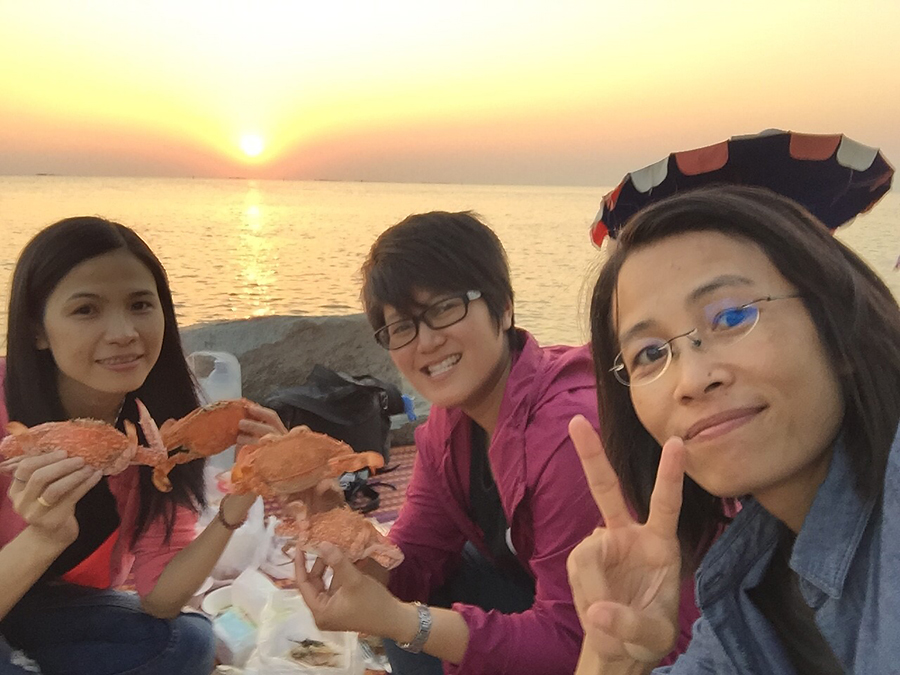 กำลังแทะปูอย่างเมามันส์ น้องสกิดๆ พี่เจี๊ยบๆๆ พระอาทิตย์ตกแล้ว ล้างมือไปถ่ายรูปเลย อ้าว ฉันเหรอต้องเสียสละ น้องบอก ช่าย... จัดไปค่ะได้เสมอ