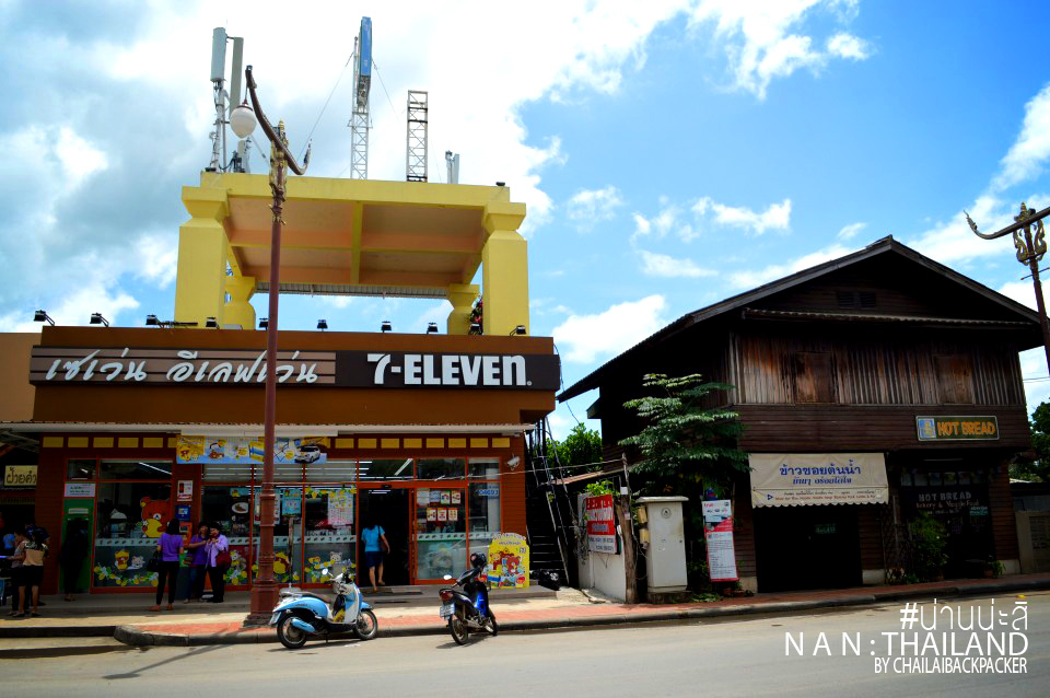 ตรงข้ามร้านเฮือมฮอม ก็จะตรงข้ามกับร้าน 7-11 ที่ดูไม่เหมือนร้าน 7-11 ทั่วไปเลยครับ