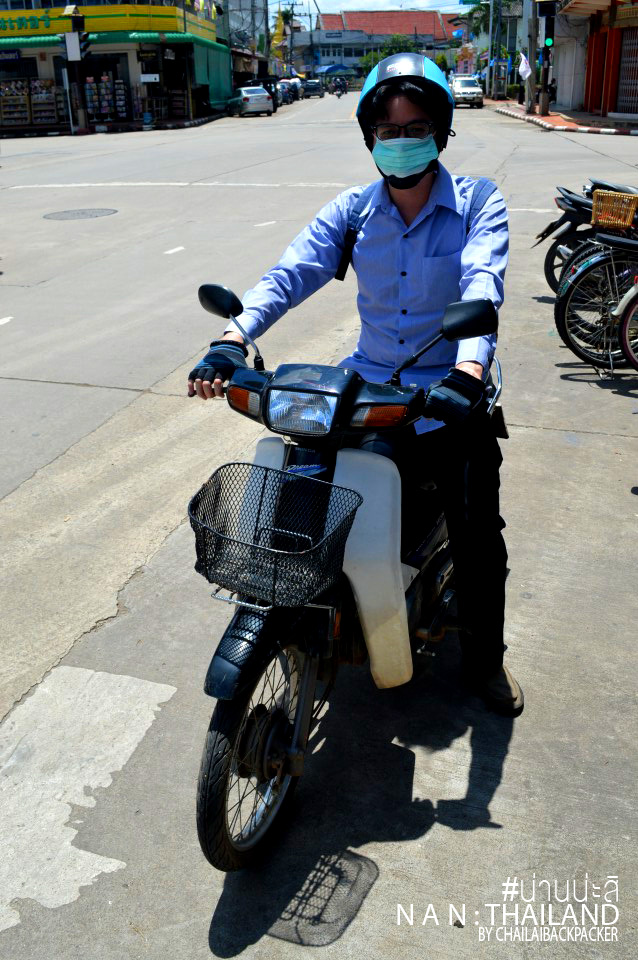 ผมให้รถสองแถวไปส่งที่ ร้านเช่า มอเตอร์ไซค์ ครับ นั่นคือจุดหมายแรกเลย เพราะการเดินทางท่องเที่ยวในเมืองน่านนี้ จะใช้วิธีเช่ามอเตอร์ไซค์ แว๊นซ์เที่ยวเอาครับ ซึ่งอันที่จริงนักท่องเที่ยวนิยมที่จะเช่าจักรยานปั่นชิลล์ๆ เที่ยวชมเมืองซะมากกว่า เพราะว่าสถานที่ท่องเที่ยวก็ไม่ได้ห่างกันมาก แต่เนื่องด้วยจากสภาพอากาศที่ผมมาเที่ยวในช่วงนี้ ค่อนข้างที่จะร้อน และแดดจัด คิดว่าคงปั่นท่ามกลางความร้อนแบบนี้ไม่ไหวแน่ ประกอบกับระยะเวลาที่ค่อนข้างจำกัด เลยเลือกที่จะเช่ามอเตอร์ไซค์ ที่ดูจะสะดวก กว่าครับ