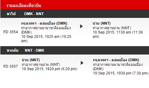ปล. ช่วงเวลาที่ผมเดินทางในรีวิวนี้ คือช่วงเดือน กันยายนของปีที่แล้ว (2558) ซึ่งมีไฟล์บินขาไป 10.25 น. และขากลับ 18.20 น. ทำให้มีเวลาเที่ยวในเมืองน่านประมาณ 6 ชั่วโมง ครับ