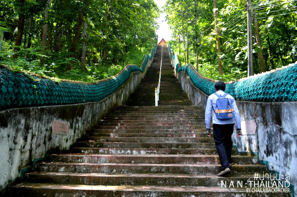 ระหว่างขึ้นบันไดไปจะค่อนข้างร่มเย็นมากครับ เพราะต้นไม้เยอะ อากาศดี ค่อยๆ เดินขึ้นไปเรื่อยๆ ครับ ระยะก้าวขาค่อยๆ เริ่มก้าวยากขึ้นเรื่อยๆ ตามระดับความรู้สึกเมื่อยของร่างกาย