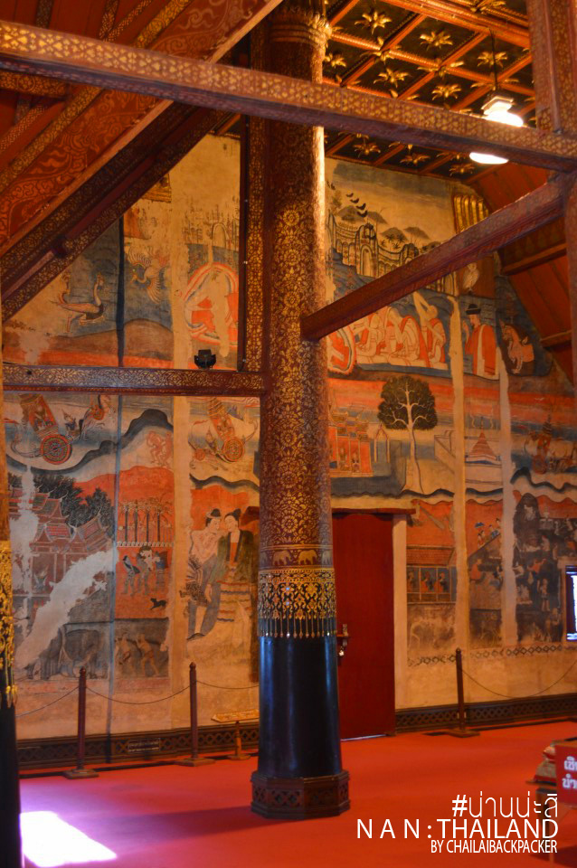 ภายในวิหารมีจิตรกรรมฝาผนังมากมายแสดงถึงวิถีชีวิตและความเป็นอยู่ ของชาวน่านในสมัยอดีตที่น่าศึกษา และควรอนุรักษ์ไว้