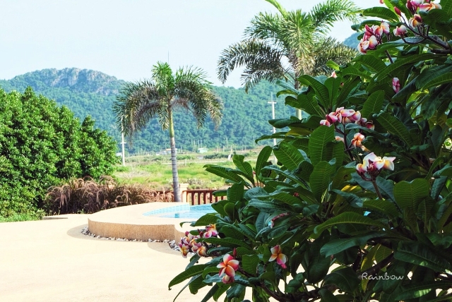 ถ้ามองจากในรีสอร์ทออกไปด้านหน้ารีสอร์ทจะมองเห็น "เขาสามร้อยยอด"