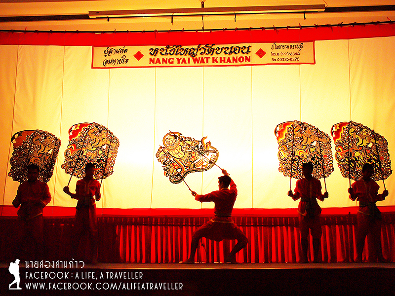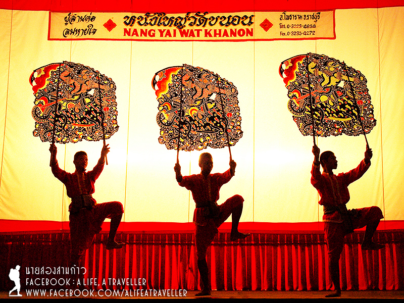 แน่นอนว่ามาถึงราชบุรีทั้งทีเราย่อมไม่พลาดชมหนังใหญ่ แต่ก่อนถึงเวลาแสดงไปเดินดูพิพิธภัณฑ์ซึ่งเป็นที่รวบรวมตัวหนังใหญ่กันก่อน คำว่า “หนัง” ในหนังใหญ่ไม่ได้หมายถึงละคร หรือภาพยนตร์ หรือลีลาการแสดงนะครับ แต่หมายถึงหนังวัวซึ่งเอามาฉลุลวดลายกลายเป็นตัวละครต่างหาก ซึ่งพิพิธภัณฑ์ที่วัดขนอนเก็บตัวหนังใหญ่ซึ่งมีอายุตั้งแต่สมัยรัชกาลที่ 5 ไว้หลายร้อยตัว ได้รับการบูรณะและรักษาอย่างดี ส่วนที่นำไปเล่นบนเวทีเป็นตัวหนังใหญ่ที่จัดทำขึ้นใหม่
