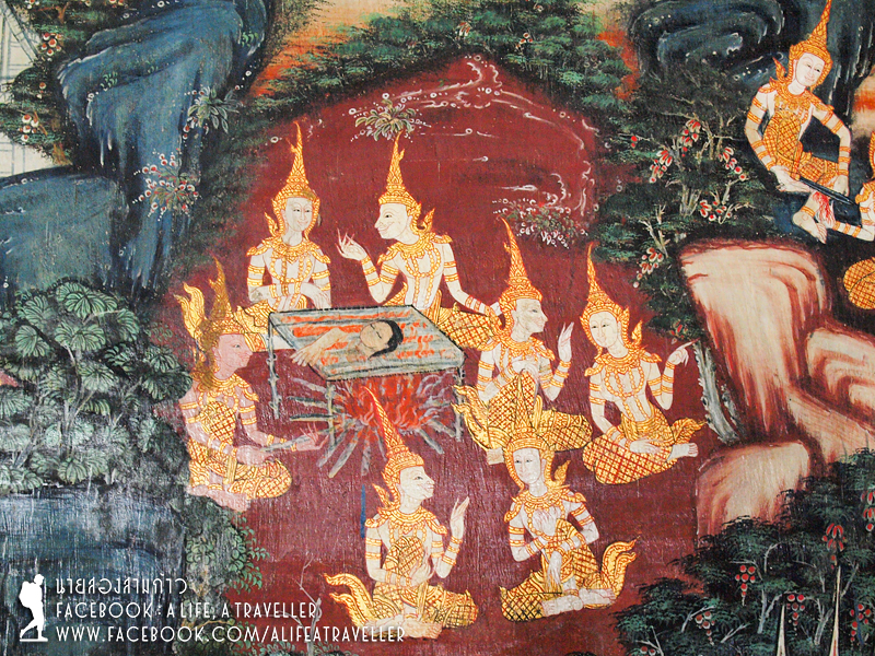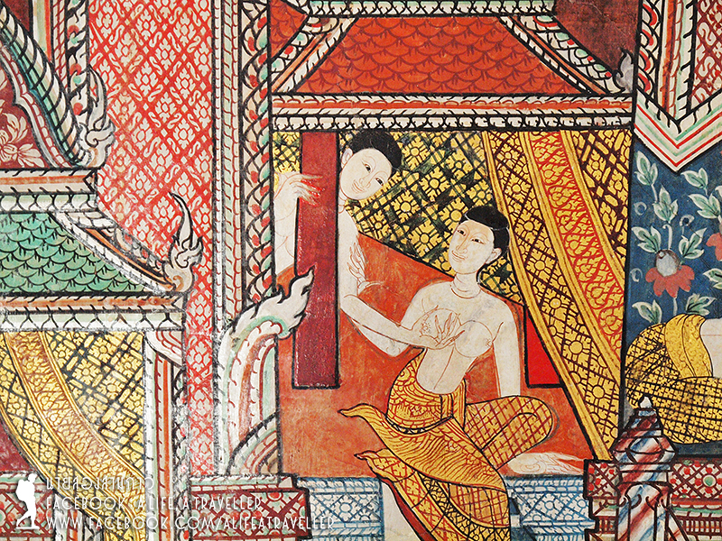 ว่ากันว่าความสวยงามของภาพจิตรกรรมฝาผนังให้ดูที่ความอ่อนช้อย ลายเส้น ซึ่งบอกตามตรงว่าผมดูไม่เป็นหรอก รู้เพียงว่าจากสองตาเพ่งมองแล้วเป็นงานวาดเขียนที่สวยมากๆ ถึงแม้หลายส่วนจะลบเลือนและเสียหายตามกาลเวลาก็ตาม