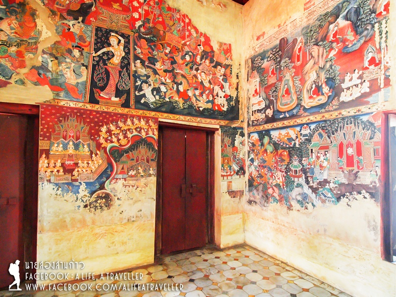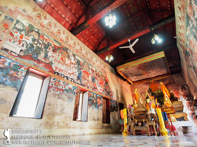 ภาพจิตรกรรมเหล่านี้เล่าพุทธประวัติ ชาดก ความเป็นอยู่ชาวบ้าน เหมือนวัดอื่นทั่วไป แต่ที่นี่มีจุดเด่นชนิดทำให้หลายคนขมวดคิ้วคือมีความ “อีโรติค” แฝงอยู่หลายจุด ซึ่งอาจมาจากอารมณ์ขันของช่าง หรือสะท้อนความคิดของคนในยุคก่อน ตีความกันเอาเองแล้วกัน