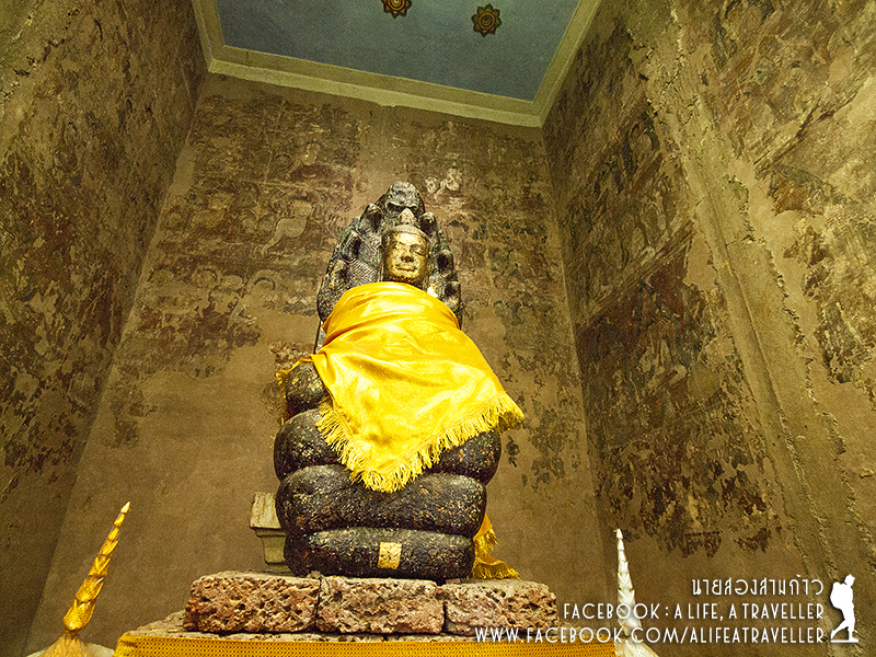 ภายในพระวิหาร ก่อนเข้าสู่ประปรางค์เป็นที่ประดิษฐานพระมงคลบุรีและพระศรีนัคร์ แปลกตามากครับเพราะเป็นพระพุทธรูปสององค์หันหลังชนกัน องค์พระเก่าแก่ไม่มีประวัติความเป็นมามากนัก แต่แน่นอนคือสมัยก่อนมีสีดำ เพิ่งลงรักปิดทองจนสวยงามเมื่อไม่กี่ปีที่ผ่านมา
