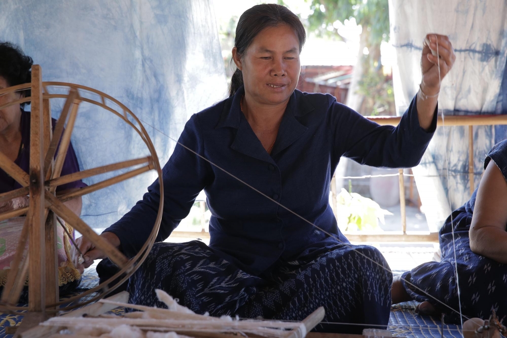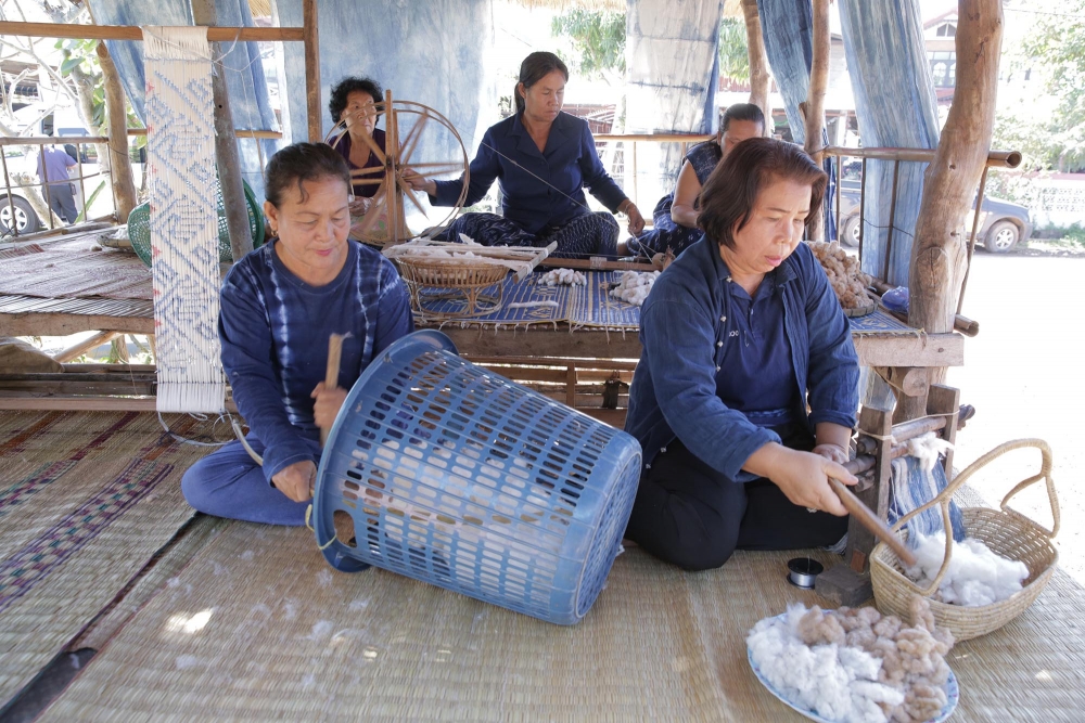บ้างปั่นฝ้าย บ้างทอผ้า เป็นภาพที่ชินตาของผู้คนที่มาเที่ยวในหมู่บ้าน