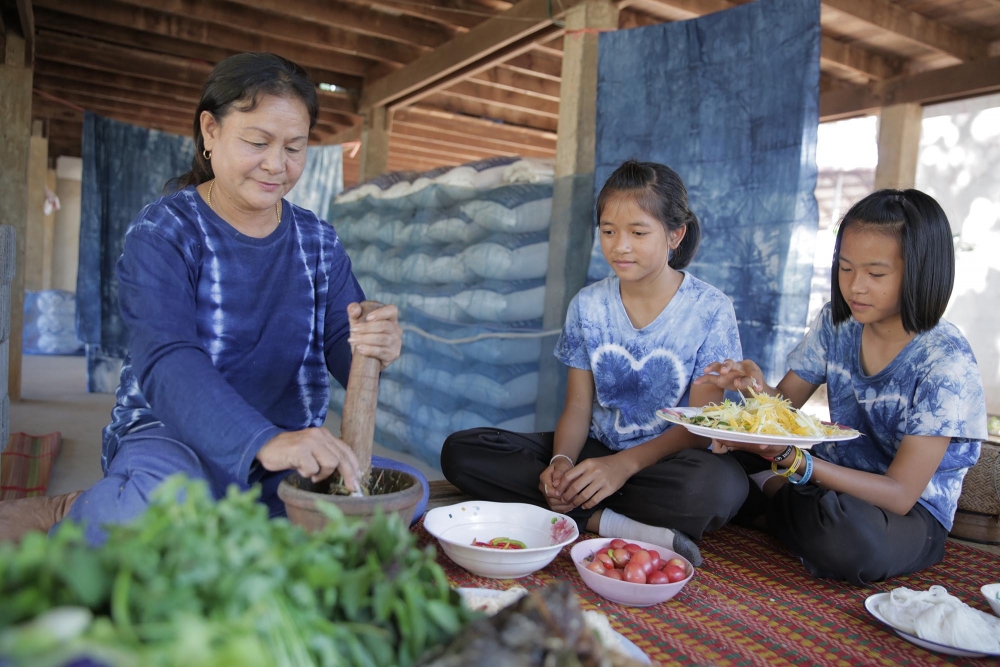 ในน้ำมีปลา ในนามีข้าว ข้างบ้านมีแปลงผัก เก็บผักสวนครัวมาทำกับข้าว เก็บครามมาย้อมผ้าไว้สวมใส่