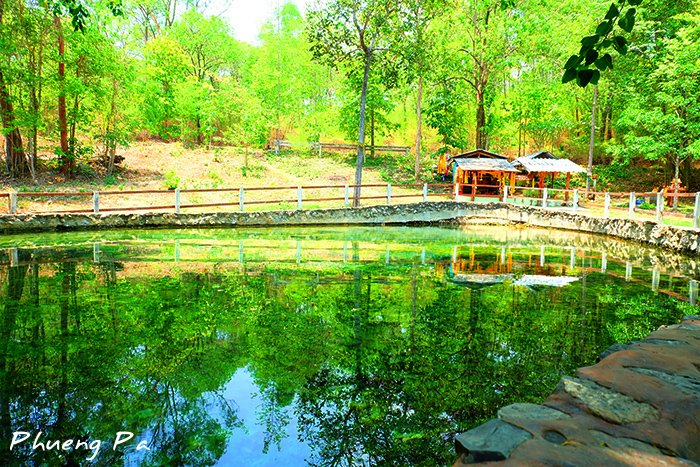 นี่คือบ่อน้ำร้อน เดิมทีเป็นเพียงน้ำร้อนผุดขึ้นมาค่ะ ต่อมา ชาวบ้านและหน่วยงานในชุมชนก่อสร้างบ่อขึ้นมา เพื่อกั้นไม่ให้คนเข้าไปในบริเวณบ่อน้ำ กั้นรั้วไว้ด้วยเพื่อนรักษาความสะอาด พึ่งก็ได้เพียงแต่ยืนดูนี่ล่ะ อย่าโยนอะไรลงไปเลยนะคะ ชาวบ้านที่นี่ค่อนข้างห่วงแหนมาก มีอะไรแปลกปลอมนิดเดียว แม้กระทั่งใบไม้ร่วง เค้าก็เก็บออกแล้ว