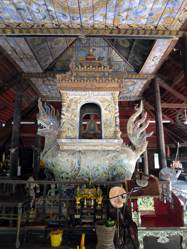1. ธรรมาสน์สิงห์เทินบุษบก เคยเห็นไหม...ธรรมาสน์ตั้งอยู่บนหลังสิงห์ ! รูปปั้นสิงห์ขนาดใหญ่ เทินธรรมาสน์ทรงบุษบกไว้บนหลัง ด้านล่างล้อมด้วยรูปปั้นตัวละครในมหาเวสสันดรชาดก ประดับลวดลายเขียนสี ฝีมือสกุลช่างญวน