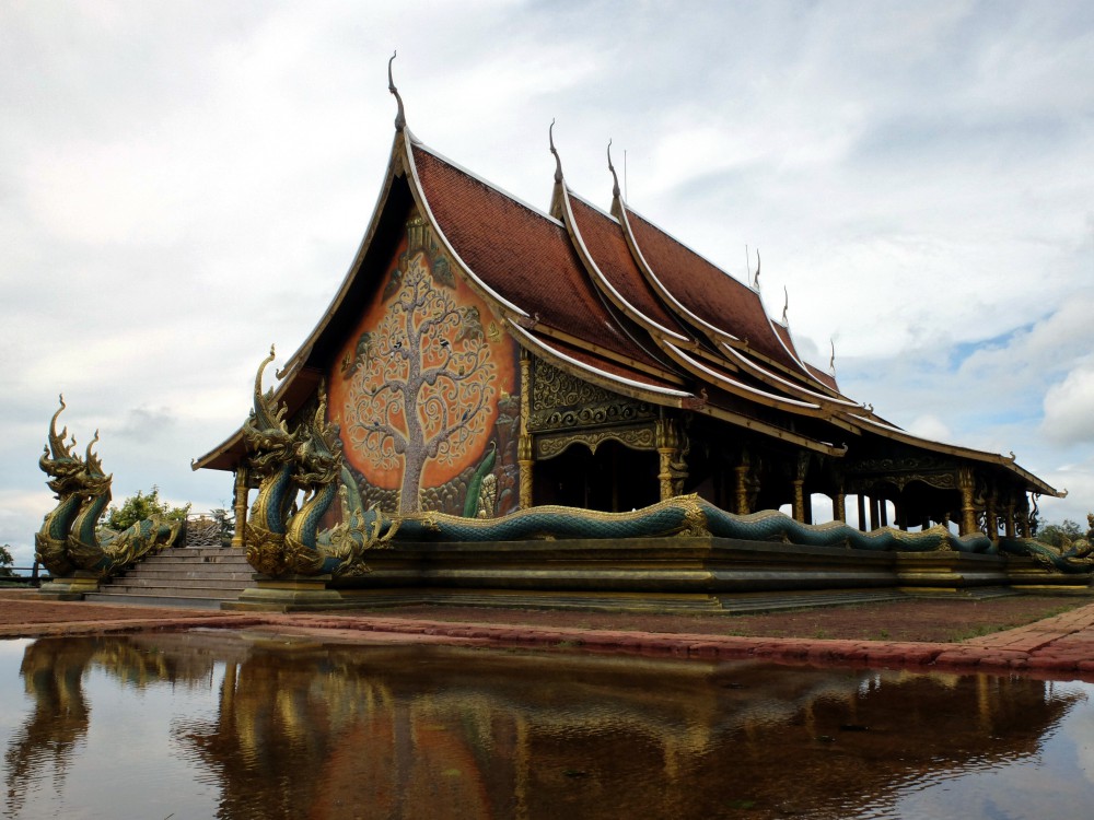 ตัดไปที่ อ.สิรินธร สถานที่ท่องเที่ยวที่ในอำเภอนี้ นอกจากเขื่อนสิรินธรที่กว้างใหญ่แล้ว ยังมีอีกที่ที่เพิ่งรู้จักกันไม่นาน คือ วัดสิรินธรวนาราม หรือวัดภูพร้าว ที่นี่มีอุโบสถหลังใหญ่ตั้งอยู่บนภูเขา มีลวดลายรูปต้นโพธิ์ด้านหลัง ซึ่งจะเรืองแสงในเวลาค่ำคืน รอบๆ มองเห็นทิวทัศน์รอบด้าน ทั้งเขื่อนสิรินธร ด่านฯ ช่องเม็ก ไปจนถึงเทือกเขาในลาว แต่ถึงจะมีของสวย แต่ทว่าต้นไม้ใหญ่มีค่อนข้างน้อย แดดร้อน(มาก) ถึงว่า ทำไมเขามากันตอนเย็นๆ ทั้งแดดร่ม และได้เห็นต้นโพธิ์เรืองแสงด้วย