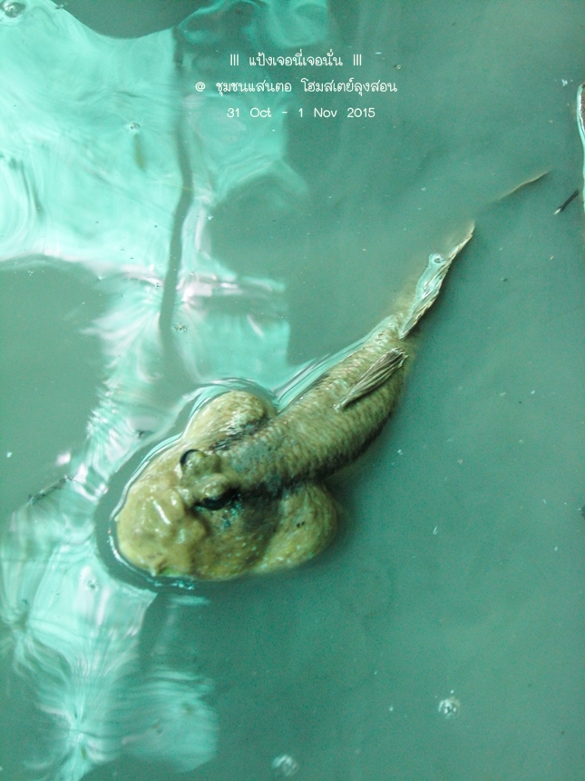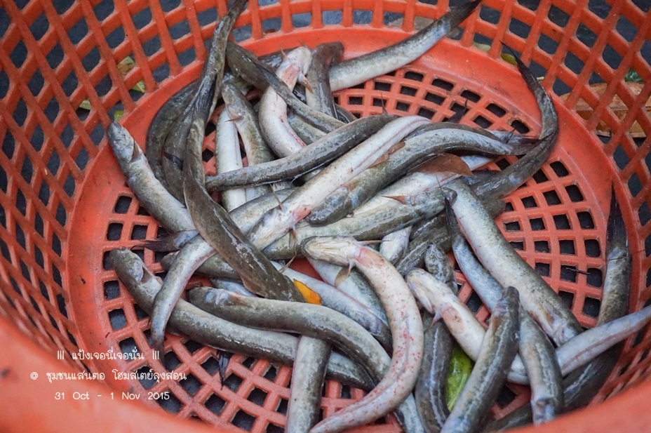 มาดูดีกว่าว่าได้ตัวอะไรมาบ้าง  ปลาชนิดนี้เรียกว่า 'ปลาเขือ' หน้าตากึ่งปลาช่อนกึ่งปลาไหลยังไงก็ไม่รู้ ป้าเอื้อนบอกว่าขายได้โลละ 70 บาท จะเห็นได้ว่าสัตว์น้ำที่นี่อุดมสมบูรณ์มาก หาได้ง่ายๆ แบบนี้เลย