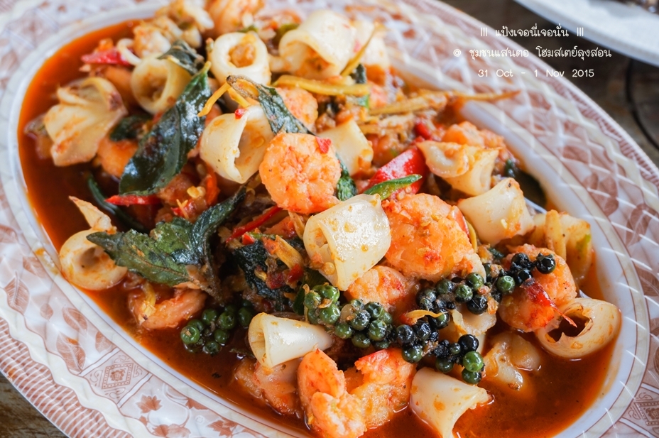 พร้อมกับผัดฉ่าปลาหมึกกุ้งให้อีกจานใหญ่ๆ -_- ป้ากับลุงได้กำไรบ้างไหมเนี่ย??? ยังไม่พอ...มีกาแฟ โอวัลติน และขนมปังให้อีกต่างหาก