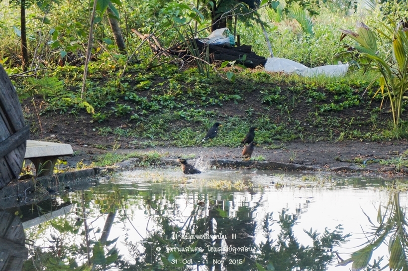 เราไม่ได้ตื่นเพราะตั้งนาฬิกาปลุกไว้ แต่มีเสียงจากเจ้าถิ่นที่ยกขบวนกันมาอาบน้ำริมหน้าต่างข้างห้องนอน