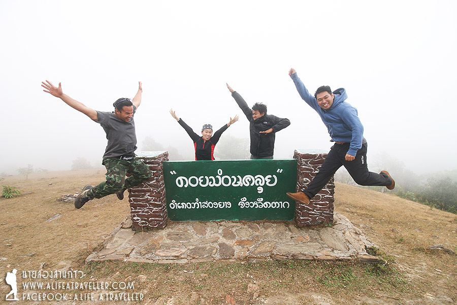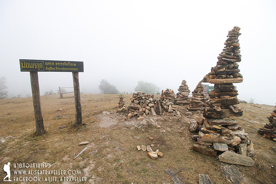 ขาลงแวะถ่ายรูป (กับป้าย) ระหว่างทางที่ม่อนคลุยสักหน่อยเก็บไว้เป็นที่ระลึก ถึงจะมองไม่เห็นอะไรเลยนอกจากสีขาว