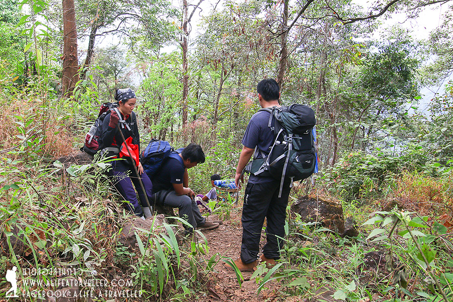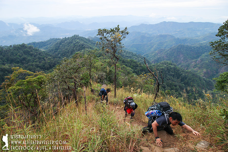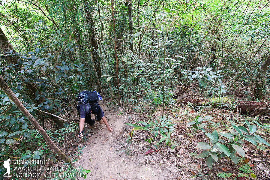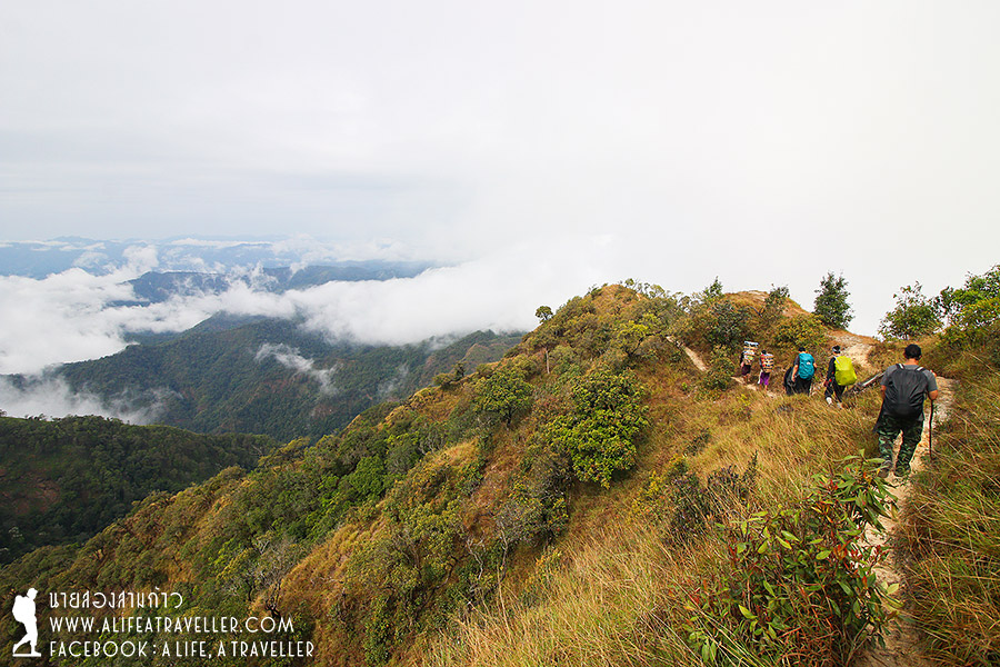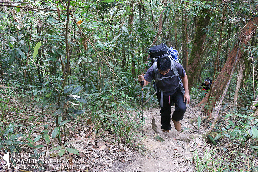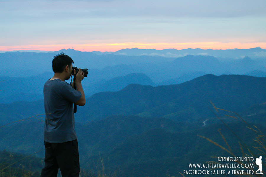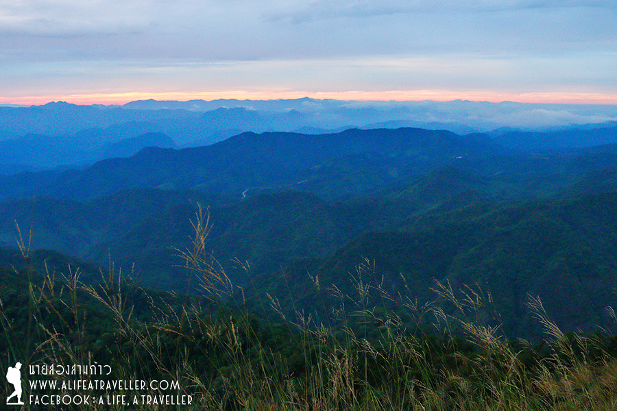 ตีห้าครึ่งตั้งนาฬิกาปลุก รวมพลสลัดขี้ตาแล้วเดินขึ้นยอด จากลานกางเต็นท์ขึ้นไปราว 400 เมตร แต่ระยะสั้นๆ ยอดดอยอยู่ตรงหน้าแค่นี้ เดินยังไงก็ไม่ถึงสักทีแฮะ