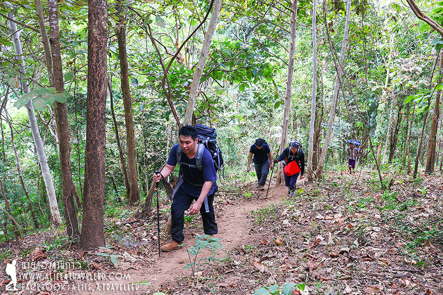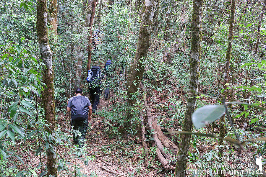 ประมาณสิบเอ็ดโมงหลังจากทำกับข้าวกินและเก็บแคมป์ เราเดินต่อสู่จุดพักแรมที่สอง คลุยหลวง หรือม่อนหลวง ระยะทางสัก 5 กิโลเมตร น้องลูกหาบบอกว่าไม่เกินสามชั่วโมง ขึ้นๆ ลงๆ ราบๆ มีหลายลักษณะ เดินขาขวิดพอประมาณ