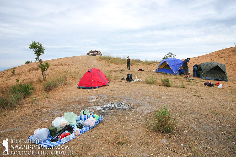 ลานกางเต็นท์มีสามจุดใหญ่ จุดแรกด้านล่างเมื่อพ้นชายป่า จุดที่สองขึ้นมาอีกนิดติดลำธาร จุดที่สามคือข้างบนเนินธง สองจุดแรกมีห้องน้ำส้วมหลุมให้ใช้กรณีจำเป็น แต่บรรบากาศพื่นที่ไม่ดีเท่าไหร่ โดยเฉพาะจุดสองมีที่เผาขยะด้วย ข้อเสียทุกจุดคือขยะเยอะมาก ตลอดทั้งทางเดิน ที่กางเต็นท์ จุดชมวิว ฯลฯ มากมายจนเกินกว่าจะช่วยเก็บให้หมด เข้าใจว่าส่วนหนึ่งเพราะเราขึ้นมาหลังปีใหม่ ถึงอย่างไรก็พาลหงุดหงิดใจไม่ได้
