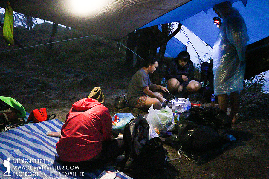 กินข้าวอิ่มหนำ ค่ำๆ ยังไม่ทันไรต่างแยกย้ายเข้านอนเพราะสภาพโทรมกันเหลือเกิน ที่สำคัญคือฟ้าปิดไม่เห็นเดือนเห็นดาว เหมาะกับการนอนเก็บแรงไว้ลุ้นพรุ่งนี้เช้า