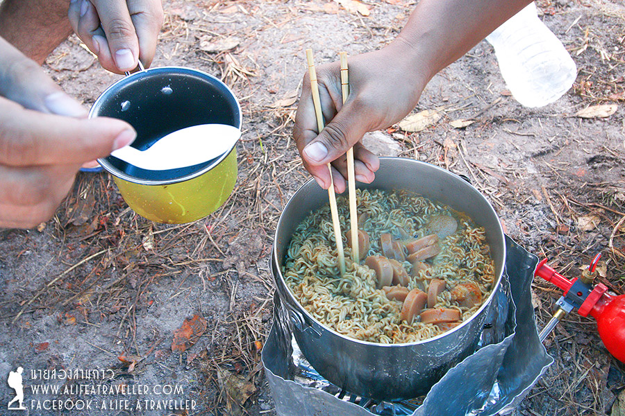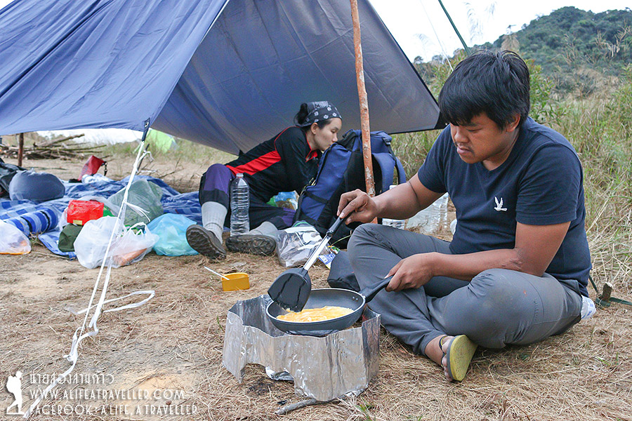 ชมหมอกนุ่มๆ อิ่มหนำสำราญค่อยมาเติมข้าวให้อิ่มท้อง กว่าจะเก็บของทั้งหมดเริ่มเดินจากลานกางเต็นท์เกือบสิบโมงครึ่ง