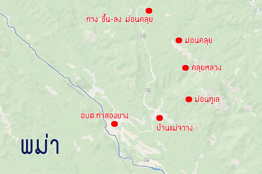 จากม่อนคลุยลงไปถึงปากทางประมาณ 7.5 กิโลเมตร ถนนเป็นลูกรังเสียส่วนใหญ่ พอถึงทางหลวงก็เลี้ยวซ้ายไปทางบ้านท่าสองยาง ระหว่างทางผ่านส่งลูกหาบที่่บ้านแม่จวาง จ่ายสตางค์เขาให้เรียบร้อยคนละ 1,000 บาท แวะกินข้าว อาบน้ำอาบท่าที่ อบต. จ่ายเงินกับคนขับรถเป็นอันเสร็จภารกิจ แต่ยังไม่จบทริปหรอกนะ